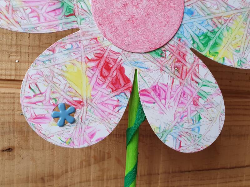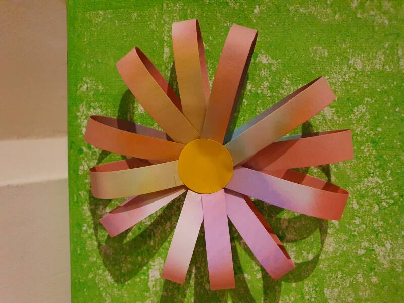 - Je kan ook zelf bloemen tekenen, uitknippen en op een touwtje hangen