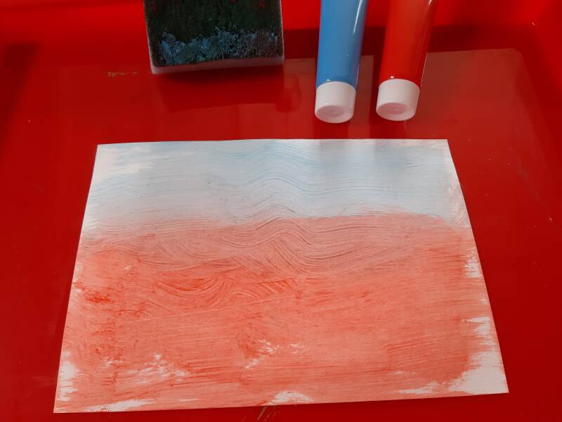 Water en crêpepapier…. wat een mooie kleuren! Verven met een keukensponsje, ik had het nog niet eerder gedaan, …