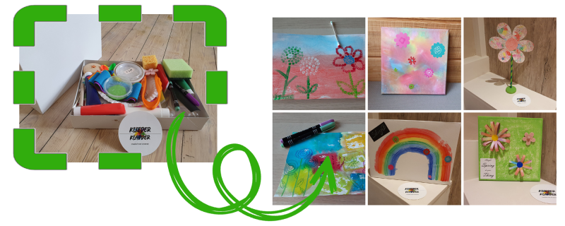 Een canvas omtoveren tot een mooi bloementuintje, experimenteren met crêpepapier en water, een eigen tekening ontwerpen,…