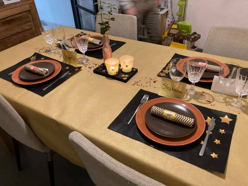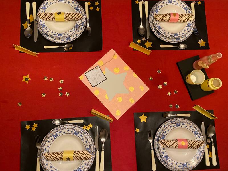 Genoeg materiaal voor een gedekte feesttafel voor 4 personen.
