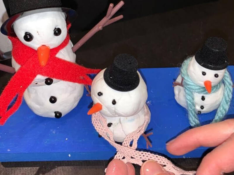 Genoeg materiaal voor 3 sneeuwmannen van klei.